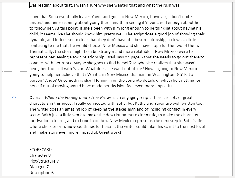 I can provide you with written notes that can help you improve your screenplay, TV pilot, novel, or short. I strive to make sure that all my feedback is constructive and uplifting, but at the same time I don’t hold back. My goal is to give you actionable steps in an inspiring way.